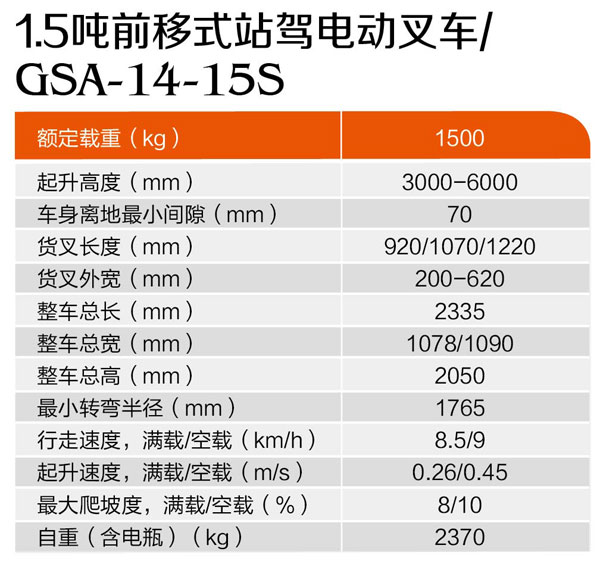 1.5噸前移式站駕電動(dòng)叉車GSA-14-15S