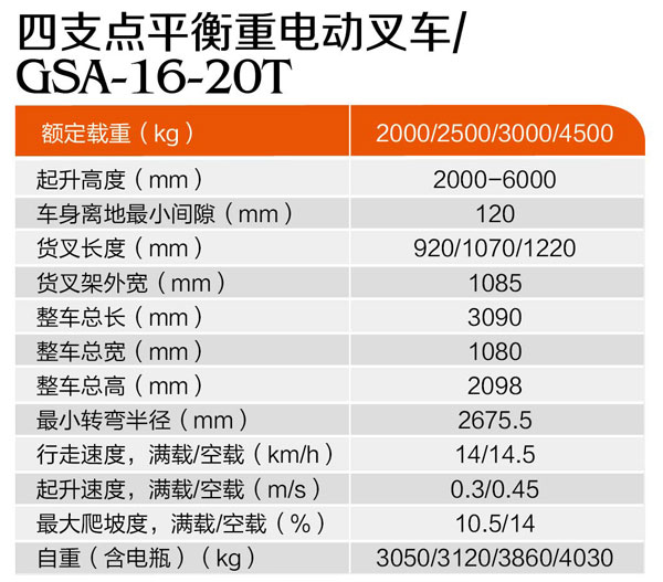 四支點(diǎn)平衡重電動(dòng)叉車GSA-16-20T