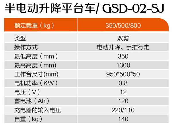 半電動(dòng)升降平臺(tái)車(chē)GSD-02-SJ